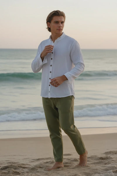Four Seasons shirt crafted from cotton muslin with a versatile and contemporary design. This style features a flared cut that flatters the figure, complemented by strategic leg slits that provide movement and natural ventilation. The muslin fabric breathes perfectly in the warm Baja California climate, offering comfort without compromising style. Ideal for creating casual and semi-formal looks that reflect the authenticity and quality of Only Cabo®. An essential piece that combines textile tradition with modern design.
